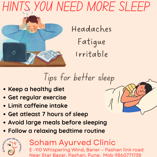 Sleep Soham Ayurved Clinic Panchakarma and Yoga Centre is one of the best ayurvedic clinic situated in Pashan, Pune. #bestayurvedicclinicinpashan #panchakarma #massage #massageandsteambath #bodydetoxification #stressmanagement #suvarnaprashan #garbhasanskar #bestayurvedicclinicinpune #infertility #obesity #skinandhaircare #menstrualdisorders #constipation #mentalstress #pimples #allergy #sinusitis #asthama #jointpain #spinecare #hypertension #diabetes #geriatriccare #acidity